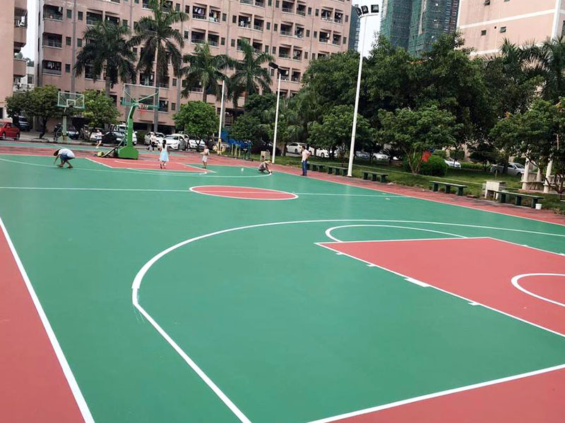 硅PU籃球場原料在建筑施工前盡量要按配置將定性分析的水加上原料內,每一桶原料(25㎏)需加上250克水接著用電動攪拌機攪拌均勻才可運用。加水的狀況下可用量杯進行秤重,已加水的原料盡量在1小時內用完,已開啟的原料盡量在當天用完。